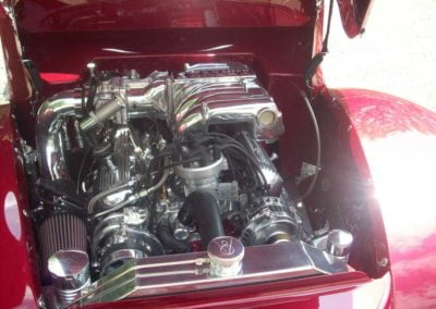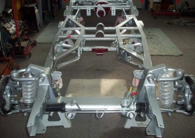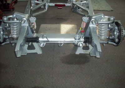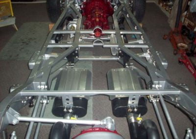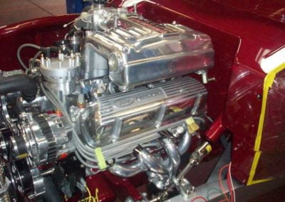 The original frame has been modified for a street rod. The engine is a ford crate 5 liter and a ford AOD transmission and ford 9” rear end.