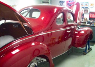 The body has been restored to its original condition. The trim is 1939 ford on the body and custom made pieces on the hood and grille.