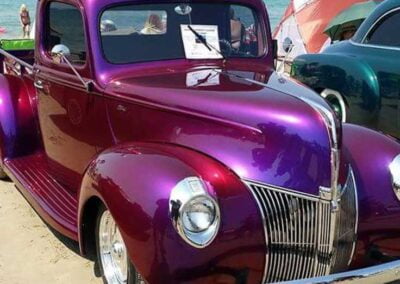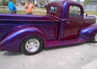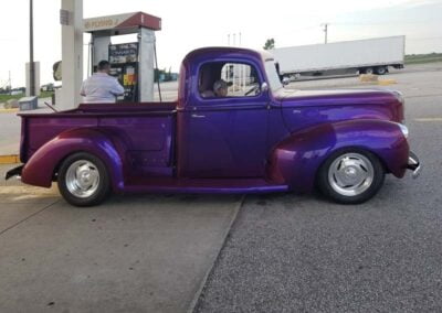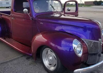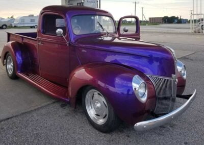 My journey to buying this pickup started with me actually going to the world famous Barrett-Jackson Auction to source a new vehicle after selling my Corvette. I was set to purchase either a Oldsmobile Cutlass or a retro Corvette. However, when I saw the paint job and various colors in paint on this 1940 Ford PU , I was blown away by the spectrum of colors.