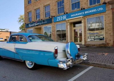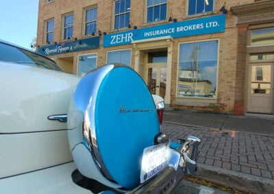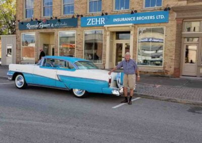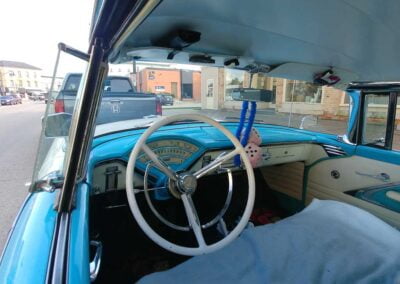 Built in Los Angeles Sept. 1956, it was purchased June 1989 from owner of the Golden Nugget Casino Las Vegas in original condition. This rust free vehicle was restored frame off with body work by Randy Richards New Hamburg, paint and detailing by Murray Erb, New Hamburg, interior by Triple A Interior Kitchener Painted original Lauderdale blue and white.