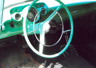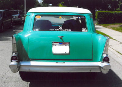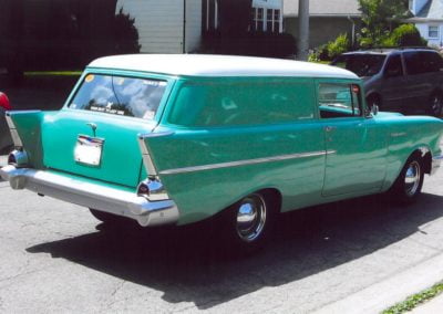 “We bought our 57 Sedan Delivery on July 24, 1974 after knowing of the car for several years. We drove it as is, with a Ken Kay paint job for 7 years to cruises and shows until a frame issue led to repairs. As usually happens, one thing led to another until we did a total body off rebuild.