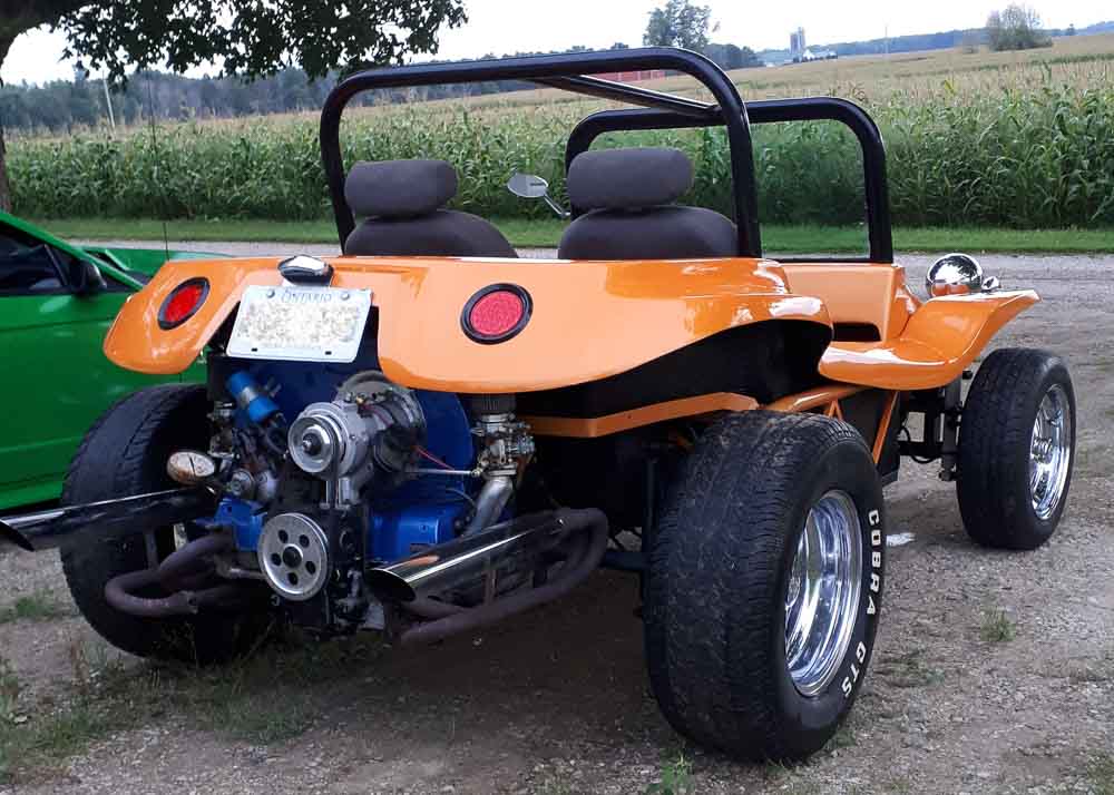 Power comes from a revived 1680cc big-bore engine once found seized in a shed in Port Perry. It now runs an Engle 110 camshaft, dual EMPI carburetors, electronic ignition, and an alternator conversion for improved reliability.