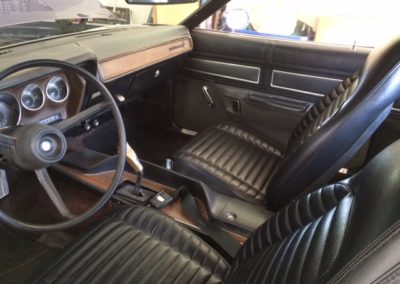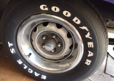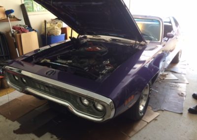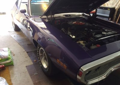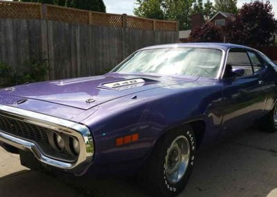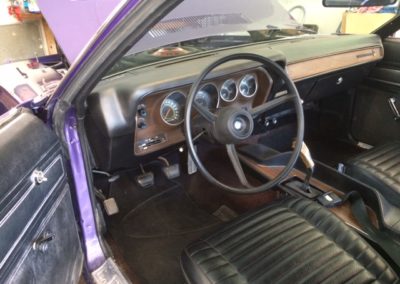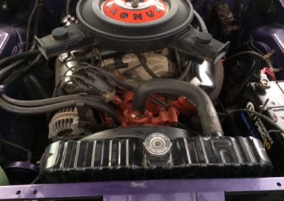 This monster has a 440 cubic inch motor with an edelbrock four barrel intake and thermo quad carb. Car puts out 370 horsepower and with the heavy duty Manuel transmission with the pistol grip shifter, it’s a blast to drive.