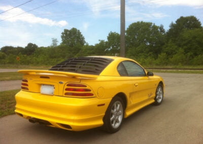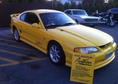 In early February 1995 I happened to be driving by Ridgehill Ford in Cambridge, when out of the corner of my eye, I spotted a bright yellow Mustang, so I circled back to have another look.