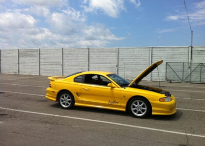 I have driven the car on a road course both at Centralia Airport and Grand Bend Motorplex. With just 240 HP it couldn’t keep up to a friend’s 460 HP Corvette on the straightaways, but it really handled well in the turns as I could accelerate out of them quicker than he could. But as we both found out later, the cornering was really hard on the tires!