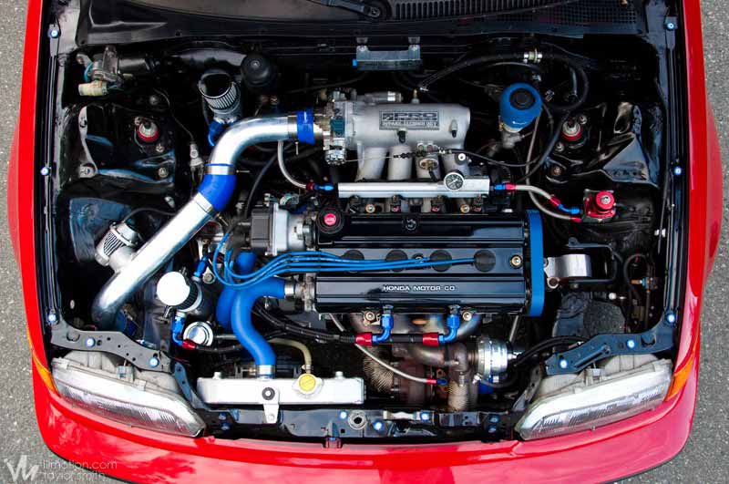 Custom paint, spoiler, JDM body kit, wheels, tires and fully adjustable suspension are added to improve the exterior appearance. The interior is done up with an aftermarket stereo, speakers, subwoofers, and new seats. Under the hood the internals of the engine are replaced, new performance cam shafts, timing gears, cold air intake, ECU, fuel rail, fuel pressure regulator and full header and exhaust improvements are completed. The transmission is rebuilt to withstand the increased power and you add a short throw shifter.